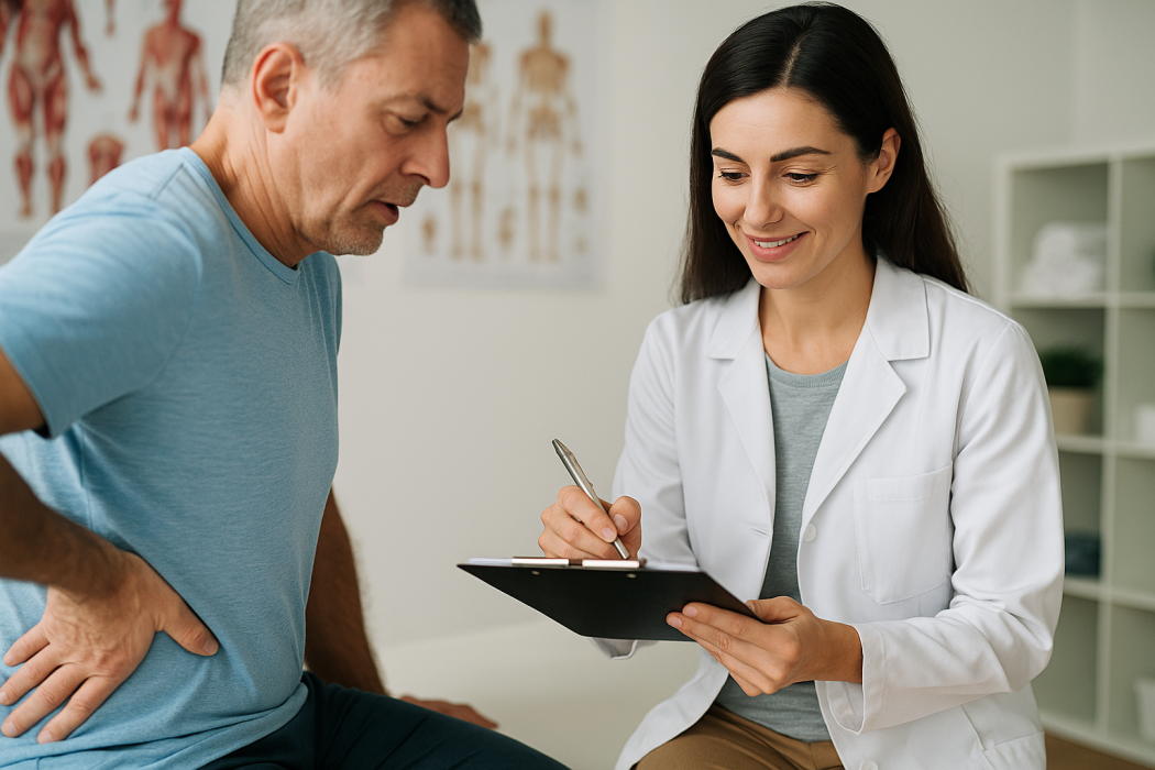Abstract Introduction Musculoskeletal (MSK) pain is a leading cause of disability, significantly affecting quality of life and work productivity. Many individuals initially rely on self-medication and home remedies, leading to delayed physiotherapy intervention. Understanding patient-reported pain characteristics is essential for optimizing physiotherapy management strategies. This study aims to analyze pain distribution, intensity, symptom duration, and recurrence among patients seeking primary care physiotherapy. Methods A cross-sectional observational study was conducted across primary care physiotherapy clinics in the Middle East, using a systematic random sampling approach. Data from 1,600 patients were collected via validated self-reported questionnaires before their initial consultation. Pain characteristics, including primary symptom site, co-occurring pain sites, intensity (0–10 Numeric Rating Scale), symptom duration, and recurrence, were analyzed. Descriptive and inferential statistics, including multivariate logistic regression, were used to identify predictors of chronic pain. Results The lower back (38.5%) was the most common primary symptom site, followed by the knee (22.1%) and shoulder (14.3%). Co-occurring pain was reported in 47.8% of cases. The mean pain intensity was 6.7 (SD = 1.9), with 50.4% experiencing chronic pain (>12 weeks). Higher pain intensity (OR = 2.3, p < 0.001) and multiple pain sites (OR = 1.9, p < 0.001) were significant predictors of chronic pain. Conclusion MSK pain is highly prevalent, with many patients experiencing chronic and recurrent symptoms. Early physiotherapy intervention should be prioritized for individuals with high pain intensity and multisite pain to prevent long-term disability. Future research should explore multifactorial contributors and assess treatment efficacy in physiotherapy settings. Keywords: chronic; data; experience; muscle; skeleton